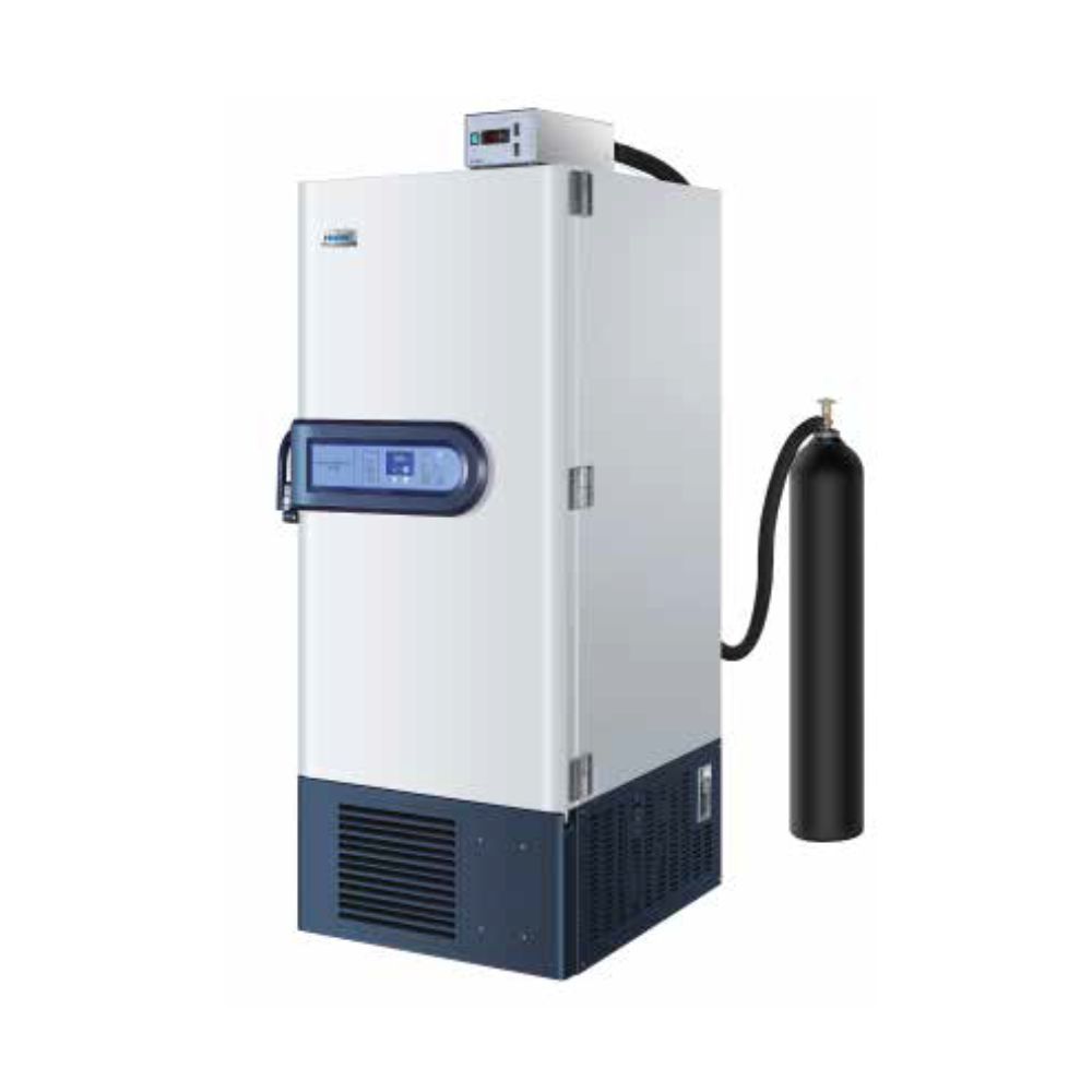 The CO₂ Backup System is a compact, lightweight solution designed for easy installation and reliable performance. Its small footprint makes it ideal for laboratories where space is limited. With user-adjustable temperature settings and a simple, intuitive interface, it is easy to programme and operate. The system offers flexibility and can be installed on any ULT freezer equipped with a port hole. Additionally, the CO₂ injection pipe is designed with an integrated filter to prevent blockage, ensuring continuous and efficient operation of the backup system.