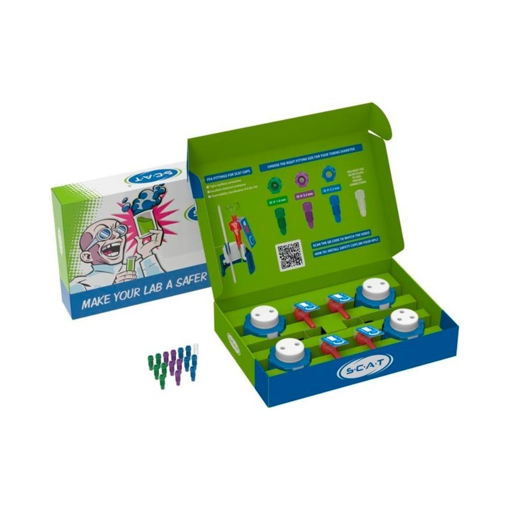 The SCAT HPLC Starter Kit I is a complete setup for safely supplying solvents to an HPLC system. Designed as an initial equipment package, it includes components for up to four solvent bottles and provides a practical starting point for laboratories setting up or standardising their HPLC waste management and solvent delivery systems.