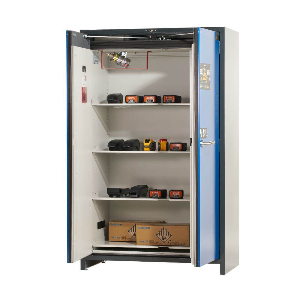The insulated shelf – Propagation tested for safety at every storage level. In the event of a battery fire, the spread to other batteries is prevented.