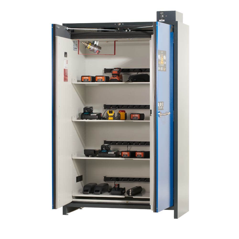 The insulated shelf – Propagation tested for safety at every storage level. In the event of a battery fire, the spread to other batteries is prevented.